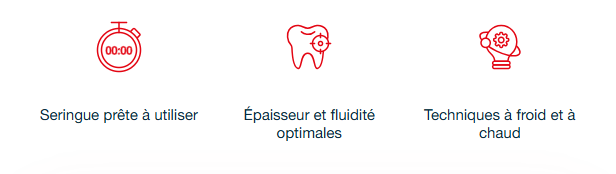 Facile – La seringue prête à l’emploi permet une extrusion facile directement dans les canaux et vous maintenez votre technique d’obturation préférée.