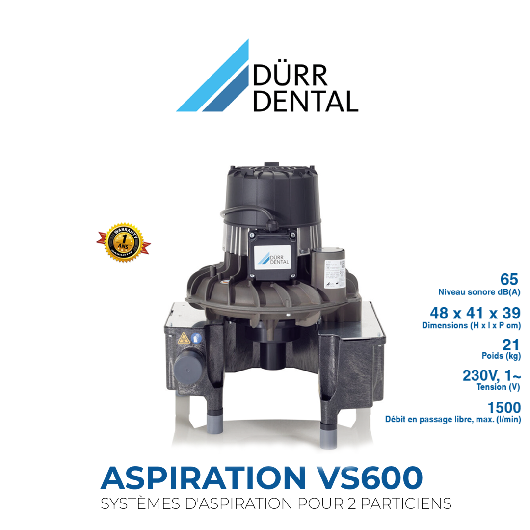 Les systèmes d’aspiration VS de Dürr Dentalsont extrêmement puissants et fiables. Ils peuvent en effet aspirer sans interruption les grandes quantités de liquides générées par quatre praticiens maximum simultanément. Grâce au système de séparation intégré à deux niveaux, les sécrétions et la mousse de sang ne pénètrent pas dans le carter de la turbine. L’entraînement de l’unité d’aspiration combinée fonctionne de façon homogène, sans vibrations et de manière très fiable. Tous les éléments fonctionnels importants sont traités contre la corrosion et ont donc une durée de vie extrêmement longue
